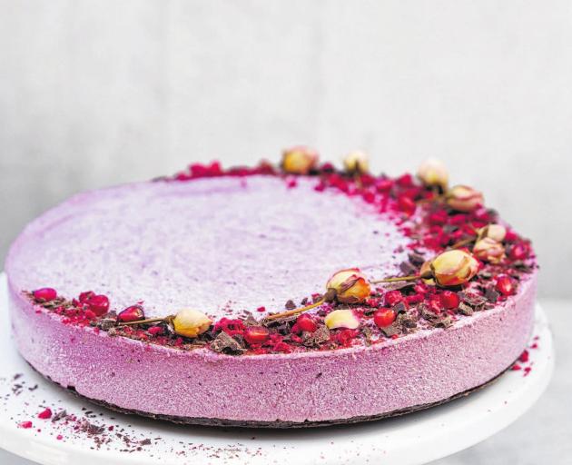 Pour filling over the crust in the dish and place in the freezer for about 2 hours, until firm. Decorate with chocolate curls, a dusting of cocoa or cacao, coconut threads and dehydrated raspberries, and refrigerate until ready to serve. Pop on some seasonal berries before taking to the table.