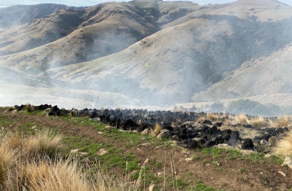 A group of nearby road workers alerted the Diamond Harbour Volunteer Fire Brigade to the fire after spotting smoke coming from a remote farm paddock.