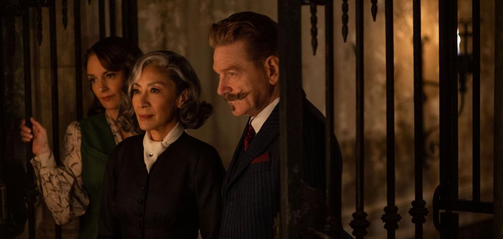A Haunting in Venice (Rialto, Metro and Reading) gives us a grieving mother, Rowena Drake (Kelly Reilly), who has summoned a renowned medium, Mrs Reynolds (Michelle Yeoh), to her creepy palazzo to try to contact the spirit of her dead daughter.