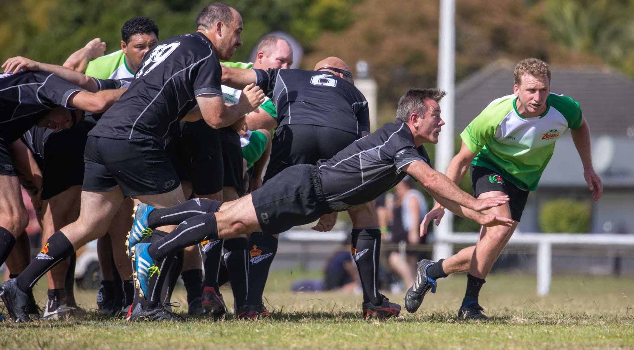 Michael Woodhouse performs a dive pass while playing halfback for the parliamentary rugby team. PHOTO: SUPPLIED