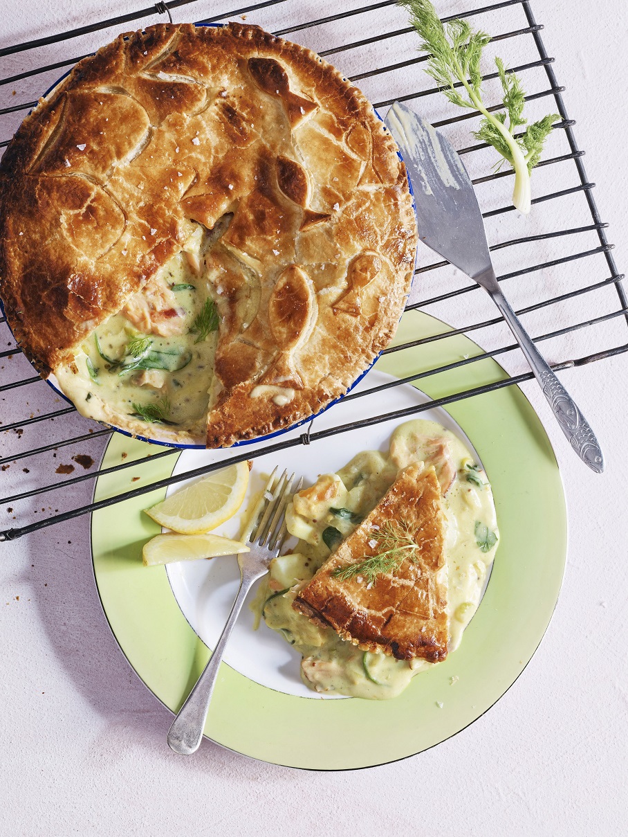 Smoked salmon and fennel pie