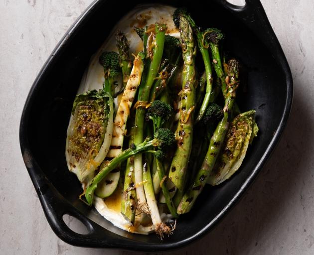 Grilled greens with Greek yoghurt and burnt lemon butter