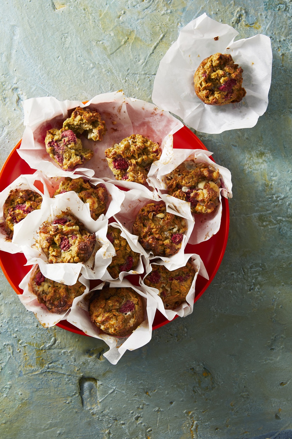 Choc, oat and raspberry muffins