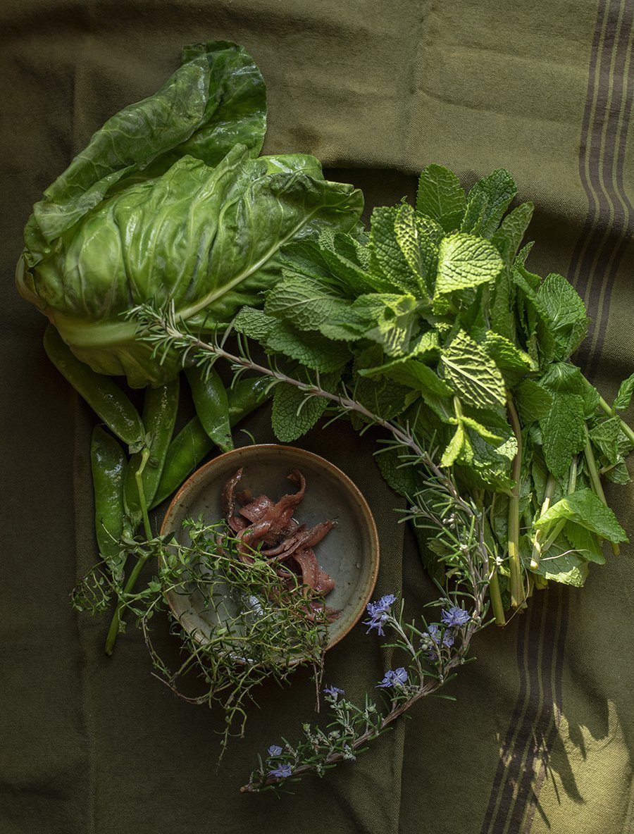 I have taken to snatching handfuls of mint and tarragon and tossing them into salads or, this week, into the steamed spring greens and peas that accompanied the roast lamb.