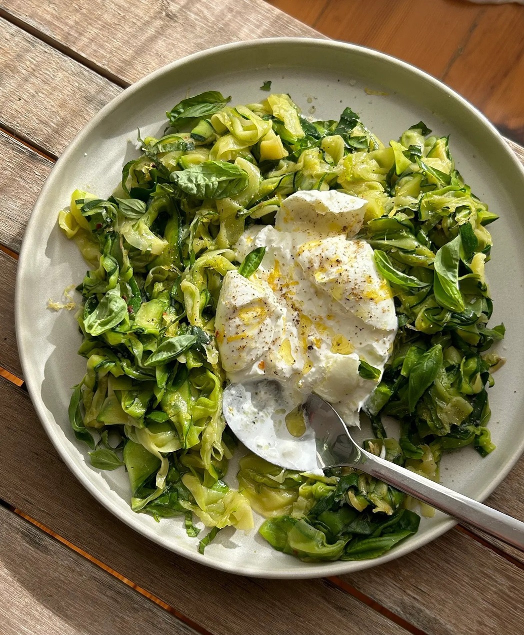 Zucchini ribbons with burrata and lemon