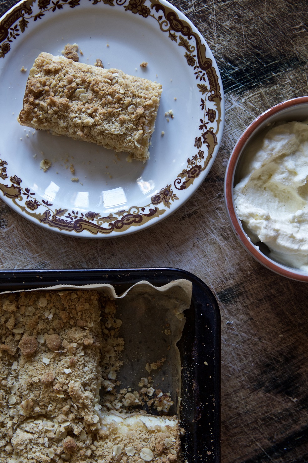 To make the base/topping. Cream the softened butter, brown sugar, vanilla and salt until light and creamy.