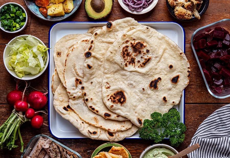 • Cooked flatbreads can be stored in a container at room temperature for two days. Freeze extra flatbreads for future meals.
