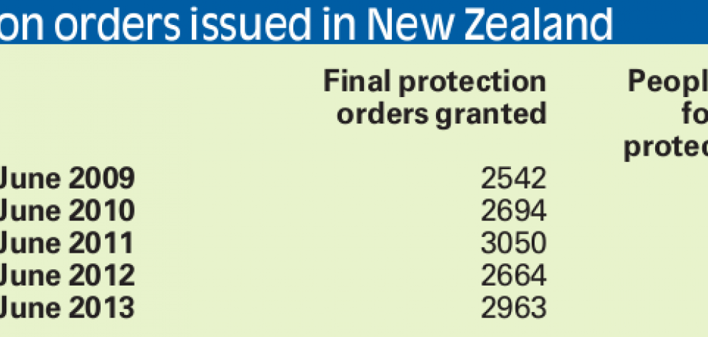 Statistics supplied by the Ministry of Justice showed there had been 13,000 final protection orders granted in New Zealand between July 2008 and June 2013, and more than 9000 people have been convicted of breaching protection orders in the same period.
