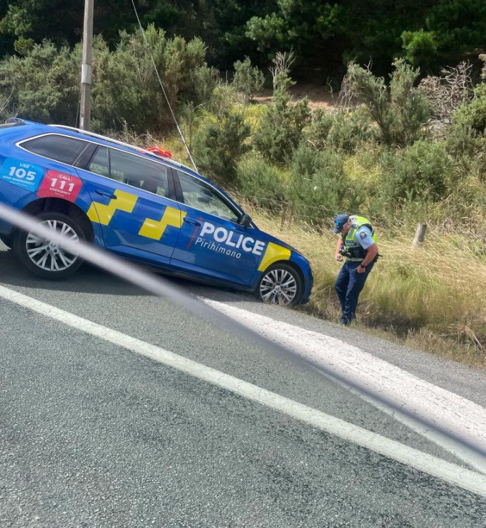 A police spokesman said the officer attempted a U-turn on State Highway 1 on Sunday afternoon after talking with a speeding motorist he had pulled over.