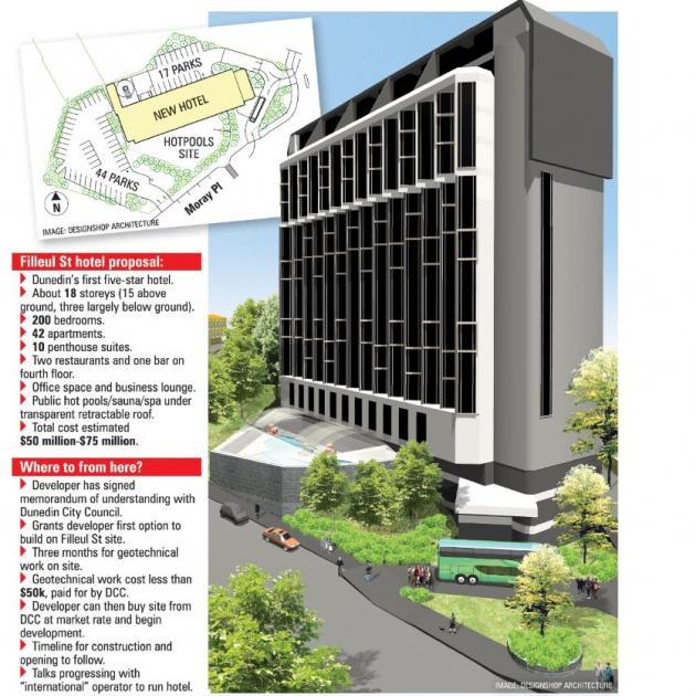 Project spokesman and architectural designer Ken Taylor, of Dunedin, said the hotel would provide a boost for the city's conference venues, including the Dunedin Centre and Forsyth Barr Stadium.