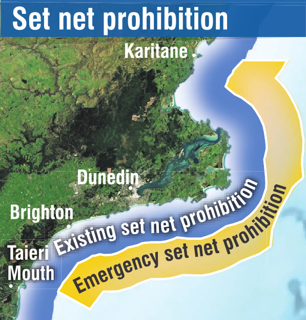 It applies to all set net fishing and extends from 4 nautical miles to 8 nautical miles for the area between Karitane and Taieri Mouth.