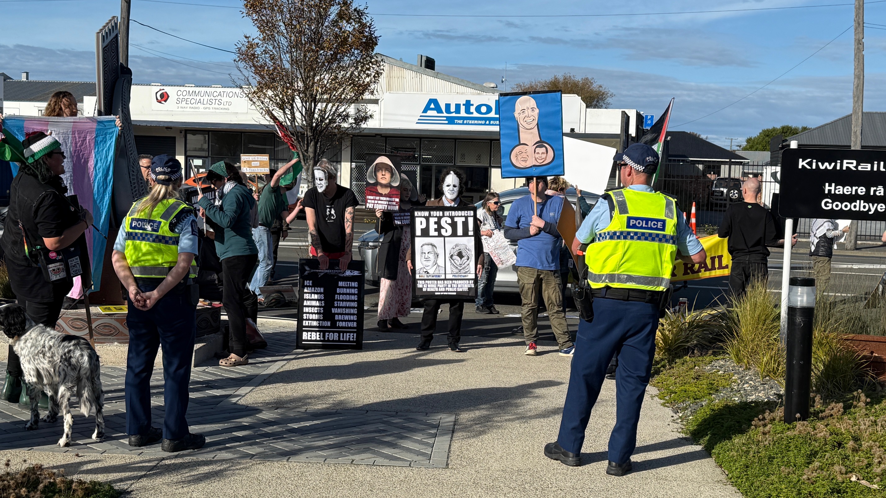 Climate Liberation Aotearoa and Restore Passenger Rail were among the groups represented along with protesters against the government's pay equity cuts.