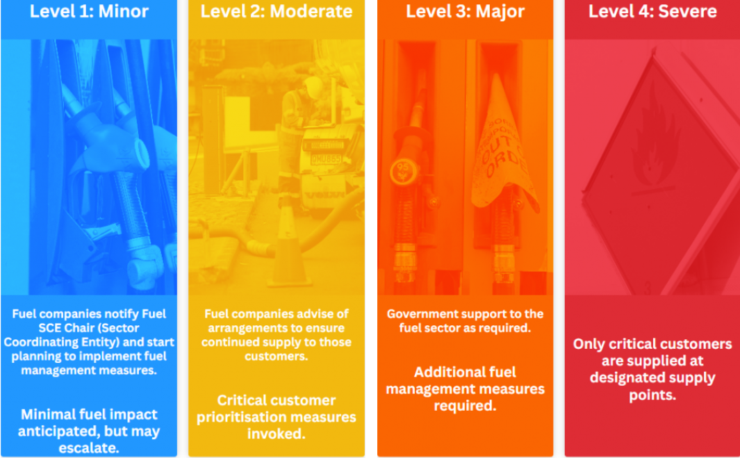 New Zealand's National Fuel Plan mimics the Covid-19 response in that it has four phases, each outlining measures that would be taken if the situation gets progressively worse.