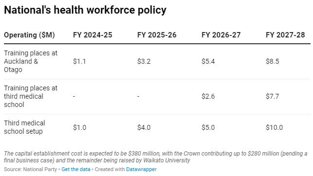 Luxon also promised to increase the number of medical school placements at Auckland and Otago by 50 from 2025. Luxon said this would be on top of the 50 extra places funded in the Budget.