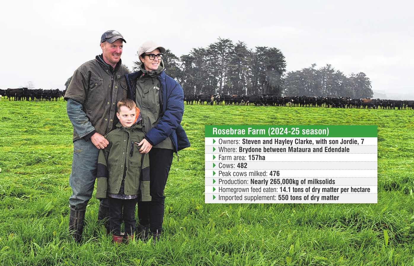 Southland dairy farmers Steven and Hayley Clarke target producing as much top-quality home-grown pasture as possible and utilise it, to increase profit and reduce emissions.