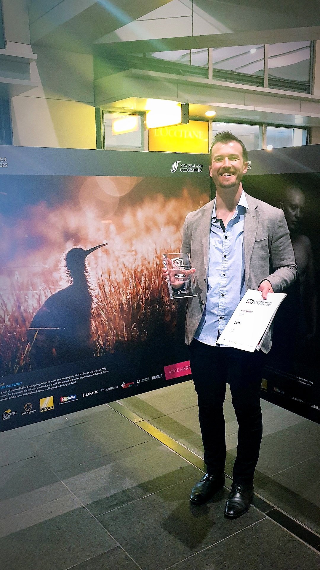 Central Otago photographer Nick Farrelly was named winner of the wildlife category at the New Zealand Geographic Photographer of the Year Awards in Auckland after an image he captured on a hunting trip to Stewart Island last year caught the eye of judges.