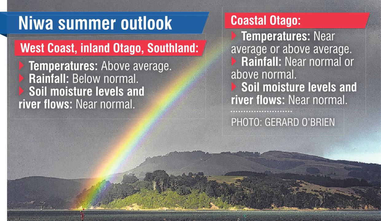 For the West Coast, the Alps and foothills, inland Otago and Southland, that meant temperatures were very likely to be above average, he said.