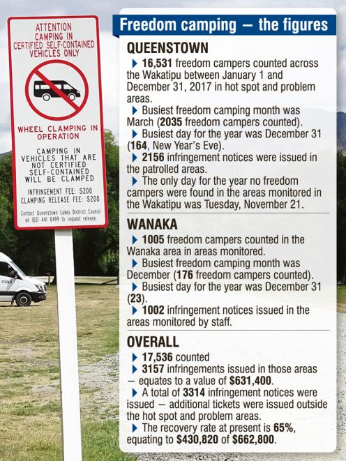 Not surprisingly, the busiest freedom camping day of the year in both Queenstown and Wanaka was New Year's Eve, when 164 were counted in the Wakatipu and 23 in Wanaka.