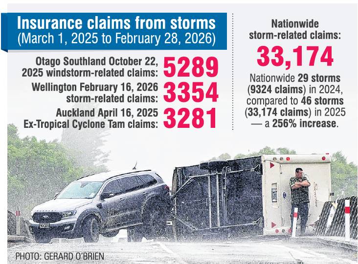 AMI, State and NZI chief executive officer Phil Gibson said between March 1, 2025, and February 28, 2026, the insurance companies processed 33,174 customer claims from storms during the year.