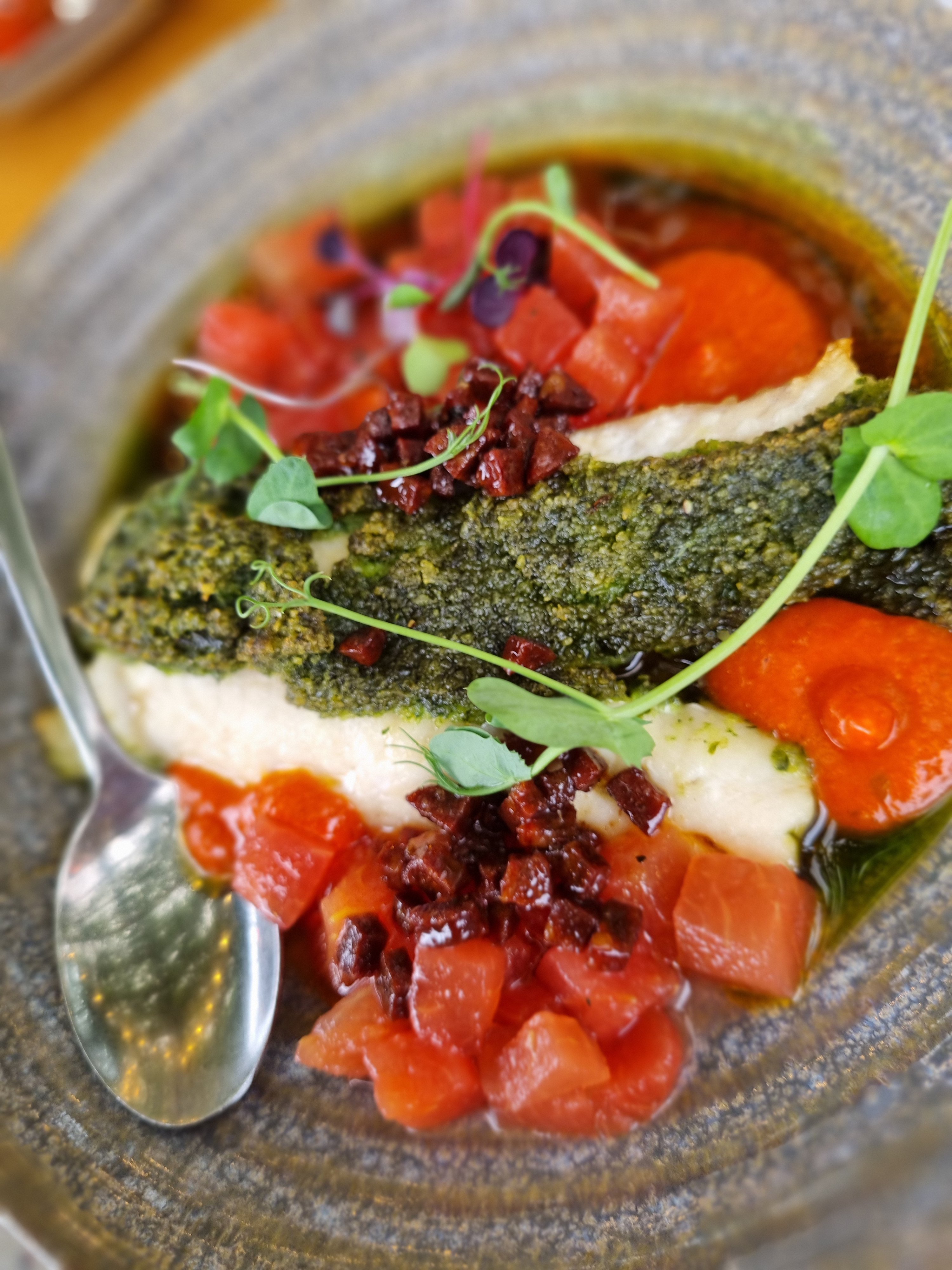 We also tried the herb-crusted fish. Served with a watermelon salsa, romesco and chorizo vinaigrette, trust me on this one it was lovely.