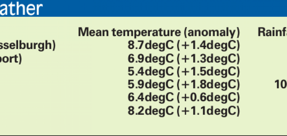 Similar conditions were experienced around Otago, with Ranfurly recording its warmest June since 1975 when records began, with a mean temperature of 4.8degC (2degC above normal), including its third-highest minimum temperature of -1degC.