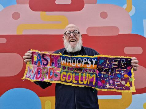 His vibrant rugs and blankets are now displayed at the Linwood Library.