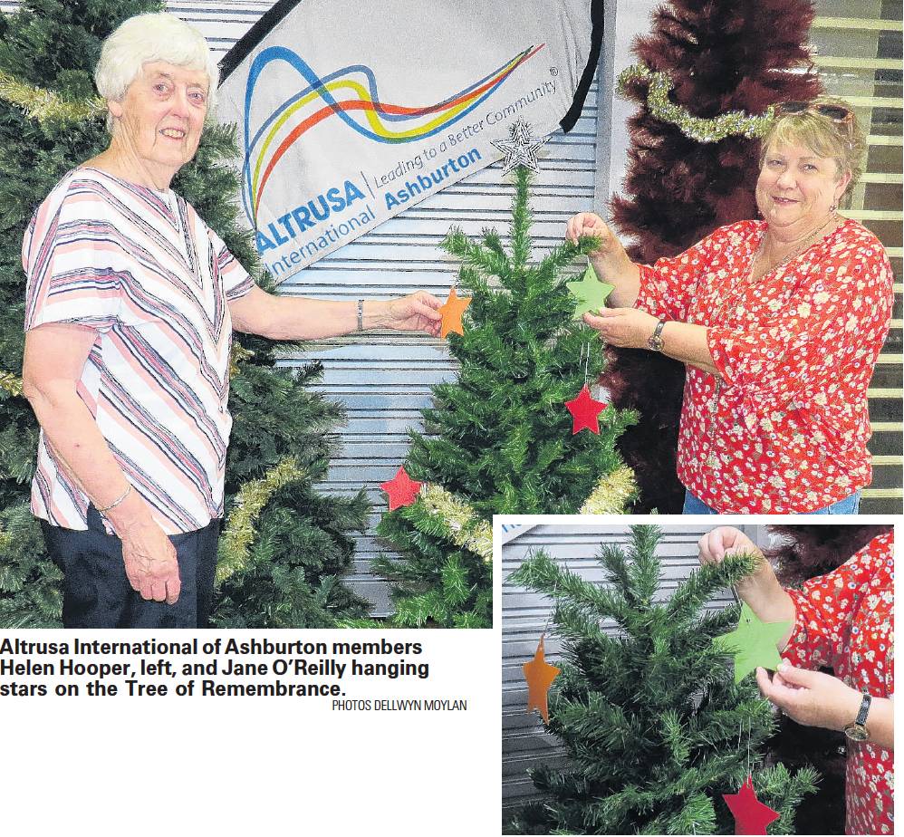 The Altrusa International of Ashburton Tree of Remembrance has been a tradition for over two decades. It enables people to purchase a star, write the name of a person they wish to remember at Christmas on it and hang it on the tree.