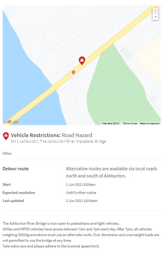 Waka Kotahi NZ Transport Agency made the announcement on Thursday morning with trucks allowed on the bridge from 10.15am.