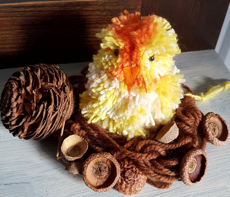 You can trim your pom pom with scissors to create more shape for the chick's head or body.