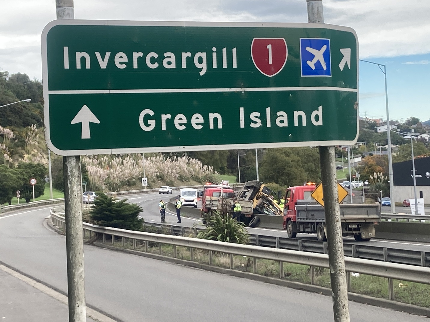 Police said the motorway was blocked in both directions, and traffic was being diverted at the Main South Rd off-ramps, into Concord and Kaikorai Valley Rd.